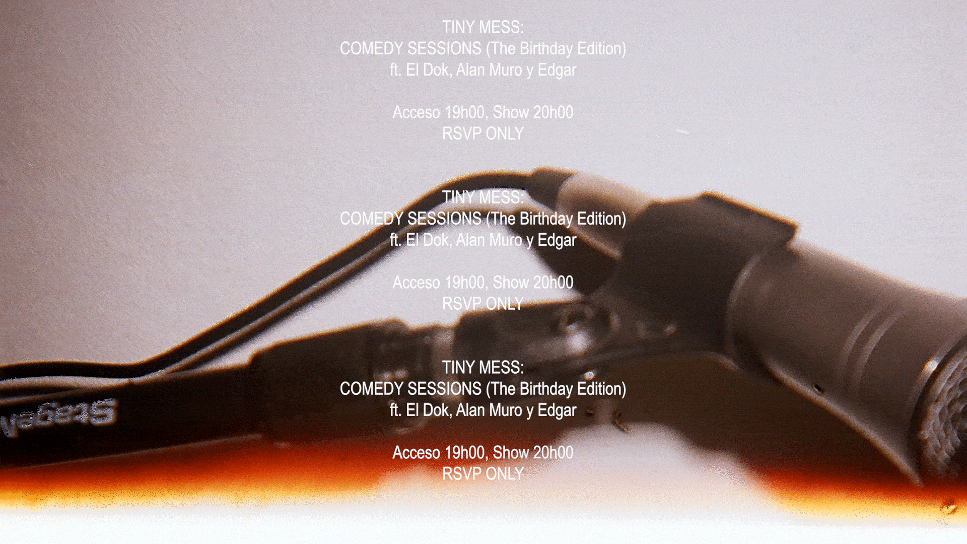 #TINYMESS is a series of private events that celebrates comedy, entertainment and nightlife in Mexico City. Inspired by late-night talk shows and theaters of varieties, #TINYMESS showcases different acts and carefully-curated performers to bring new experiences to the local scene. These sessions aim to generate and promote a safe space for all types of comedians to explore and live-perform different comedy expressions.